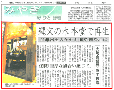 91年度出土のケヤキを使い須弥壇や柱に再生しました。